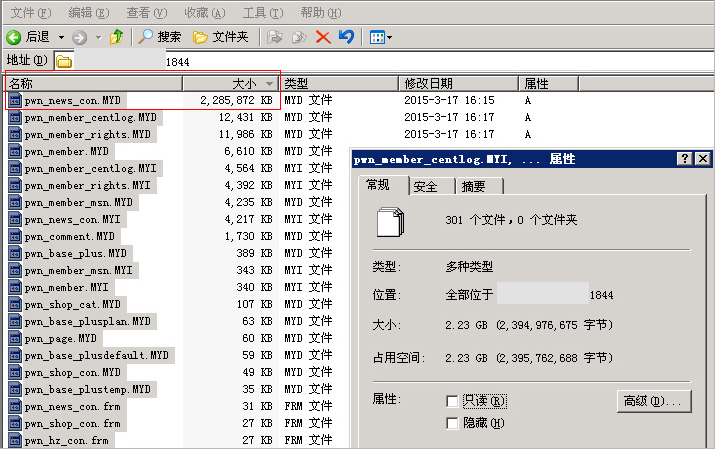 仔 細檢查后,我們發(fā)現(xiàn)網(wǎng)站其中的一個數(shù)據(jù)表文件竟然達到了 2.2G 之多,我們知道,數(shù)據(jù)庫表中一般只存放文字信息,并沒有占空間比較大的圖片或視頻等文件。很顯然,這張數(shù)據(jù)表是被黑客軟件以循環(huán)寫入的攻擊方式,不停地注 入非法信息,而且可能已經(jīng)有很長一段時間了,所以才達到了 2.2G 這么高的容量。